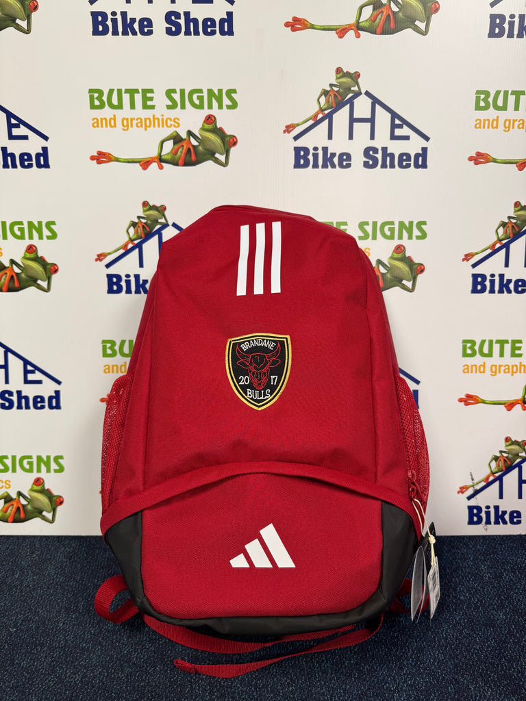This Adidas backpack features the Brandane Bulls logo embroidered on the front center